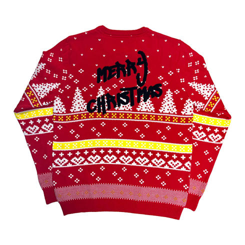 Pull de Noël rouge avec le personnage de Bart dans les Simpsons. Tailles disponibles : XS au XXL